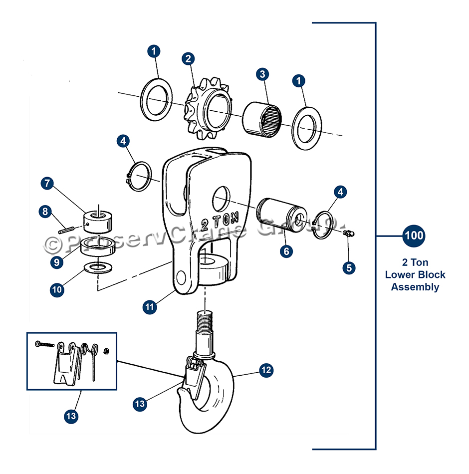 Figure 9.5. - 2 TON LOWER BLOCK ASSEMBLY (Roller Chain Hoists)