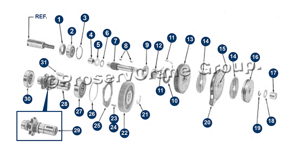 * This gear and clutch assembly should not be field disassembled. Replace assembly only as clutch pressure is preset at factory based on hoist capacity and motor H.P.
