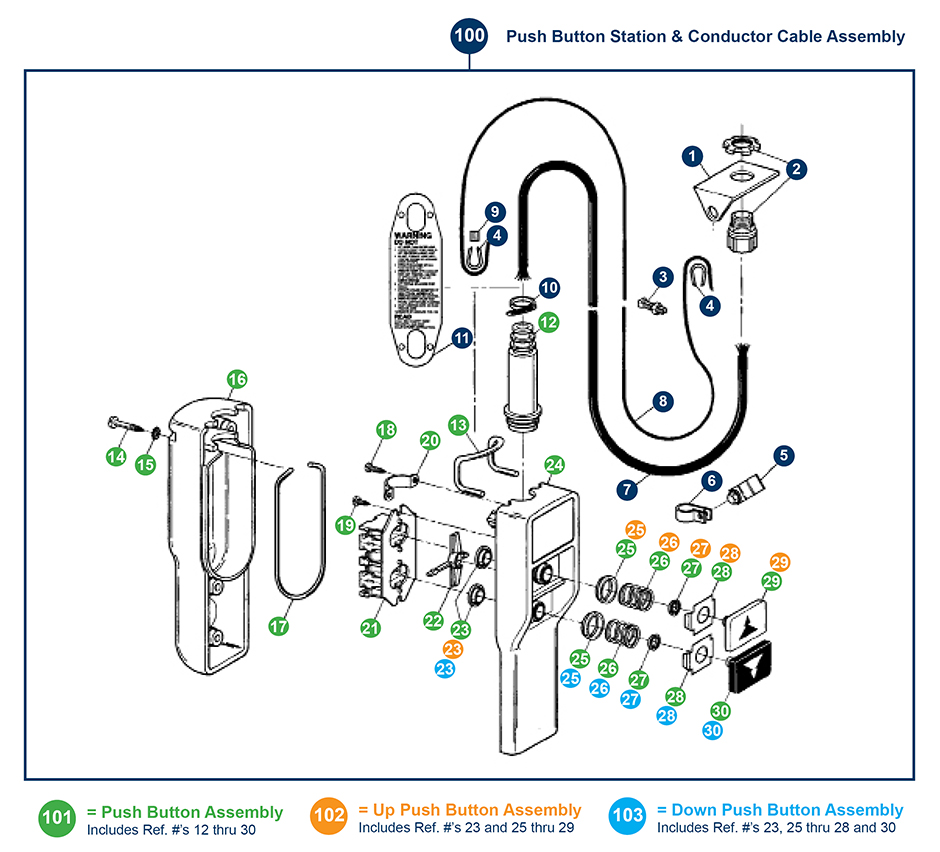 Figure 9.7. - Push Button Station and Conductor Cable Assembly (Single Speed Hoists)